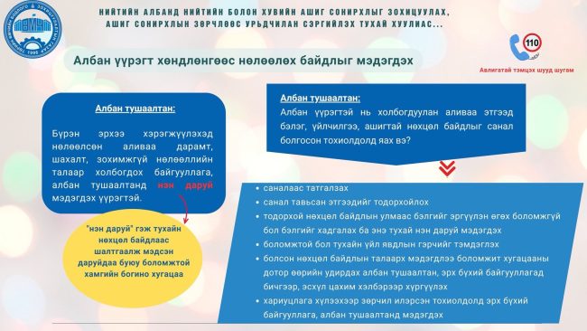 Ашиг сонирхлын зөрчлөөс урьдчилан сэргийлэх тухай хуулиас… user September 1, 2025 Continue Reading Previous: Төрийн болон орон нутгийн өмчийн нэгдсэн цахим систем нэвтрүүлэх тухай:Next: 2025 оны байгууллагын төлөвлөгөөний 3-р улирлын тайлан